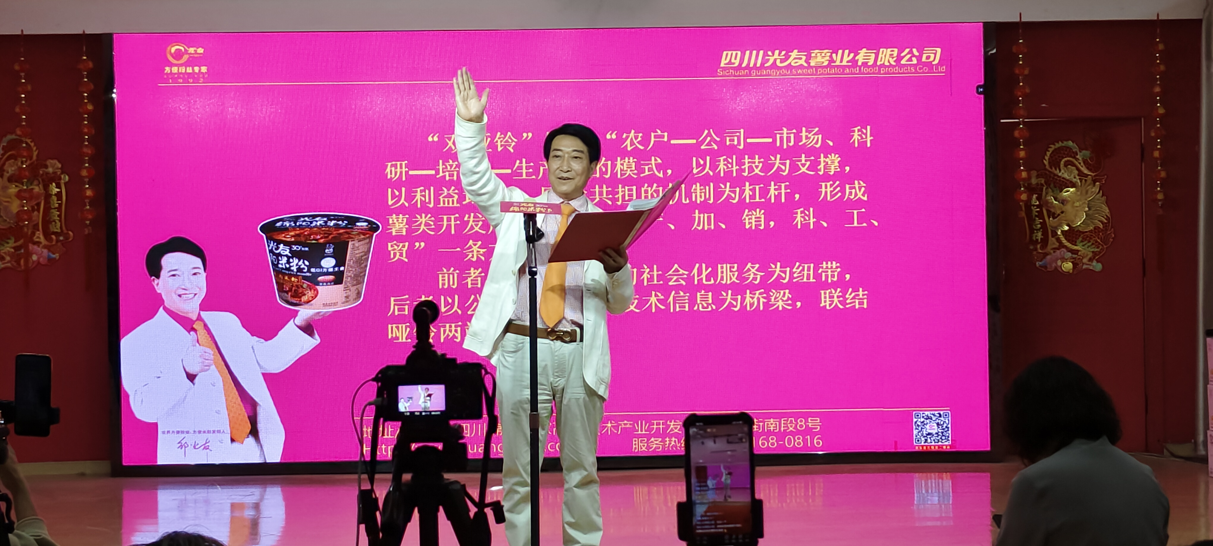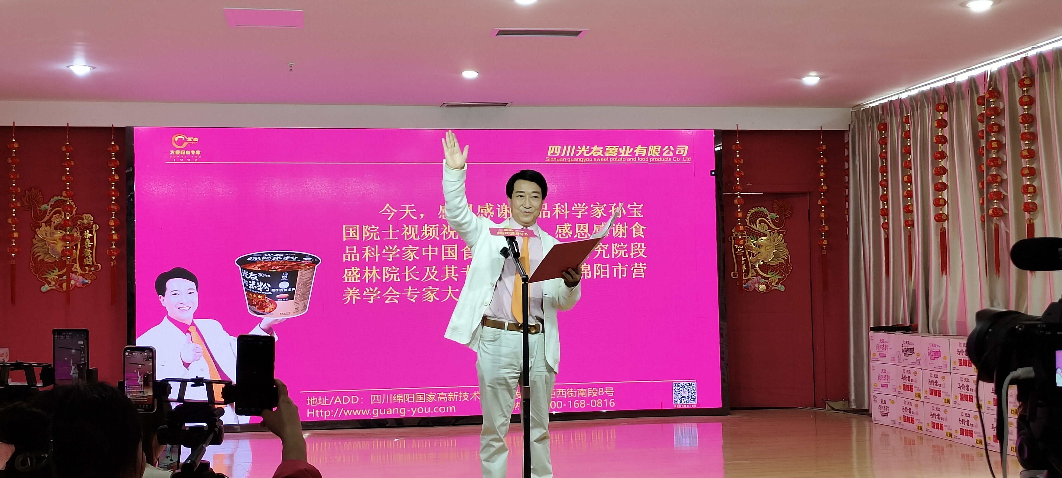 4月13日訊:2024年4月12日在中國科技城光友紅薯博物園,召開《光友綿陽米粉全球首創(chuàng)低GI健康主食暨五一送福利》新聞發(fā)布會,引領米粉健康新潮流。本次新聞發(fā)布會由國際馬鈴薯中心科技合作示范基地、國家十三五薯類方便主食課題組、國家薯類加工技術研發(fā)分中心主辦;由綿陽市米粉產(chǎn)業(yè)行業(yè)協(xié)會、綿陽米粉產(chǎn)業(yè)學院、綿陽市營養(yǎng)學會、光友實業(yè)集團、光友薯業(yè)承辦。線上線下出席的單位及代表有:中國食品產(chǎn)教融合共同體、全球經(jīng)銷商、供應商等,媒體及直播平臺有:美國華人頭條、中國食品安全報、中國新聞網(wǎng)、中國高新網(wǎng)、新浪網(wǎng)、鳳凰網(wǎng)、騰訊網(wǎng)、四川廣播電視臺、四川觀察、綿陽電視臺、綿廣FM103.3、中國老攝影家協(xié)會綿陽工作站等抖音、快手、搜狐等直播間等500余家媒體及線上線下全球千萬粉絲寶寶參加新聞發(fā)布會,上百臺直播機向全球直播不停。
