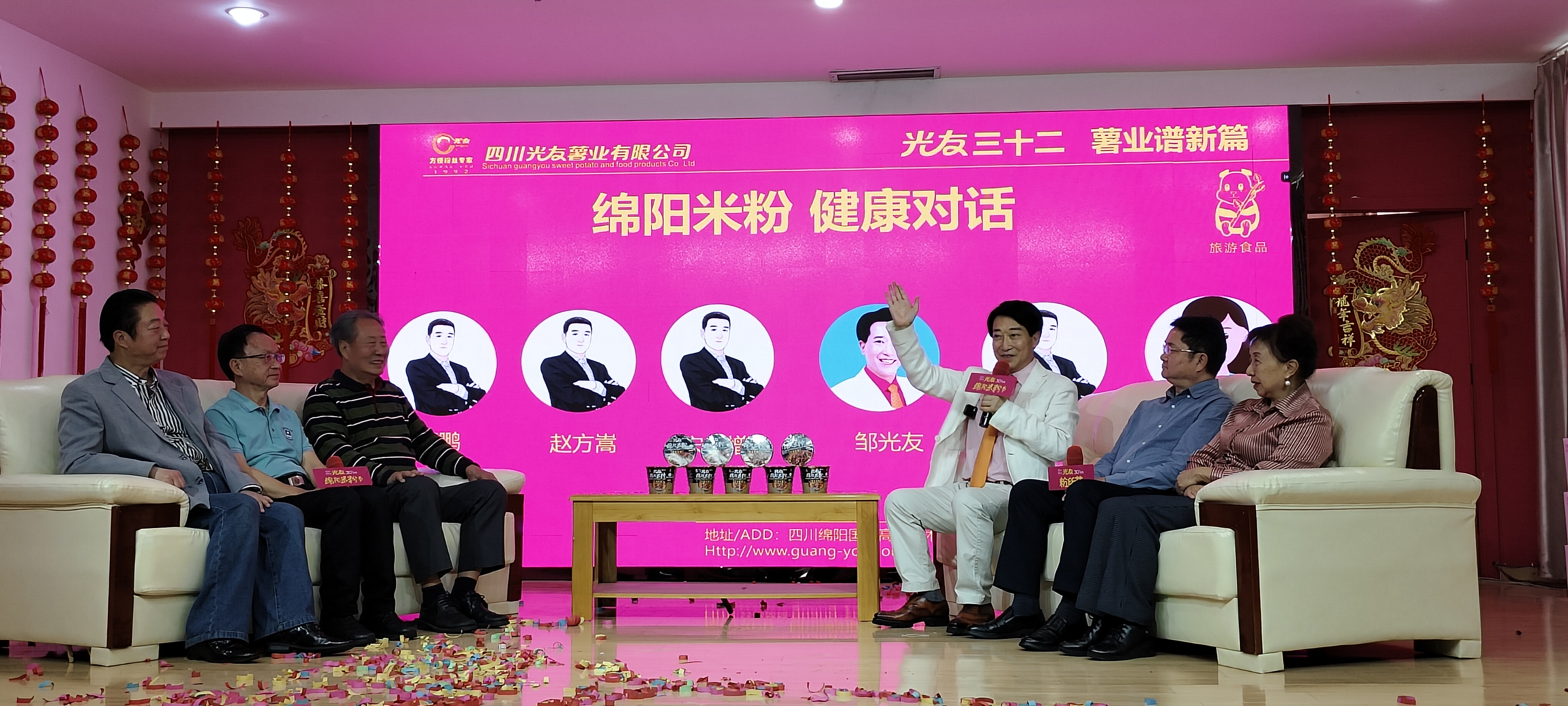 為更直觀地展示產(chǎn)品效果,發(fā)布會還特別邀請五位嘉賓上臺與鄒光友董事長現(xiàn)場對話“吃了光友綿陽米粉后的好處”,對話的嘉賓分別是中國工程物理研究院原副院長 研究員 名譽會長宋寶增、綿陽市文聯(lián)原主席馬培松、綿陽市志愿服務聯(lián)合會常務副會長趙方嵩、四川省老年詩詞創(chuàng)作研究會副會長賀正義、綿陽市歌友會會長鄒鵬,與會嘉賓在這里共同見證光友綿陽米粉低GI認證的發(fā)布,這是一次科技與美食的完美結合,不僅是對光友薯業(yè)在健康食品領域取得成就的肯定,更是對全球發(fā)展健康食品、健康產(chǎn)業(yè)理念的倡導,并且還對未來的戰(zhàn)略合作達成共識。