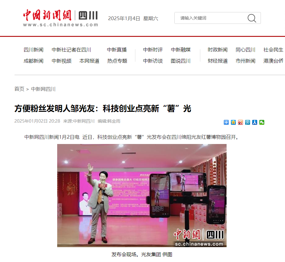 轉(zhuǎn)載中國(guó)新聞網(wǎng)·四川新聞——方便粉絲發(fā)明人鄒光友:科技創(chuàng)業(yè)點(diǎn)亮新“薯”光