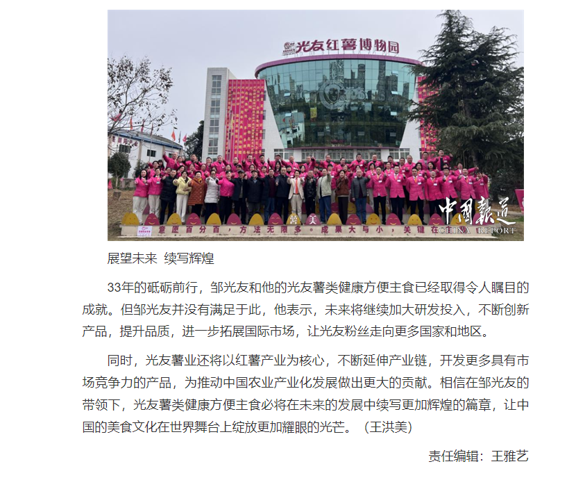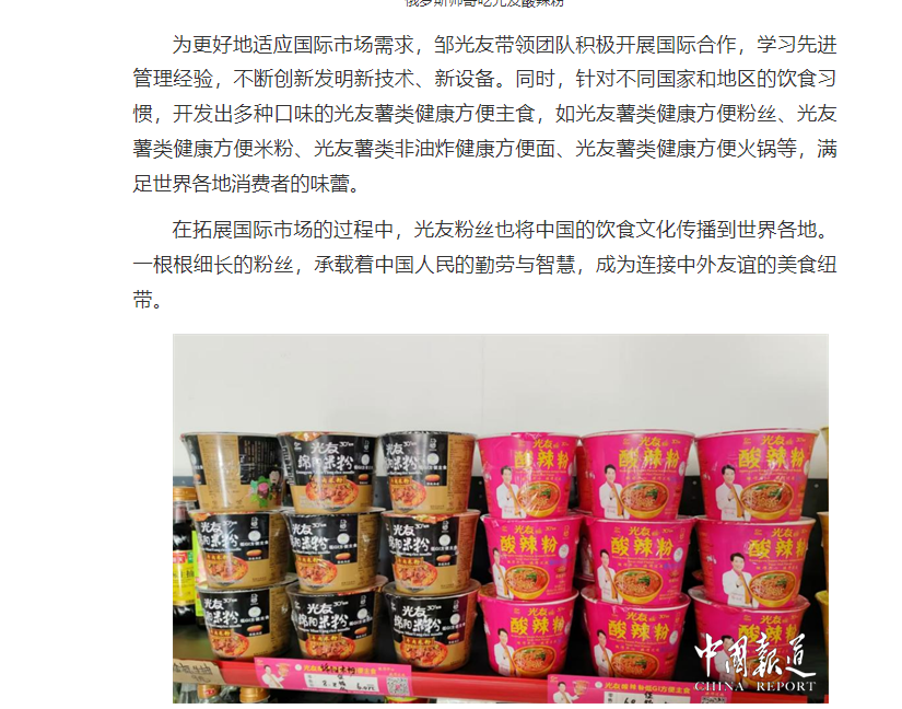 轉(zhuǎn)載中國(guó)報(bào)道網(wǎng)——鄒光友33年專(zhuān)注一根紅薯粉絲 暢銷(xiāo)全世界