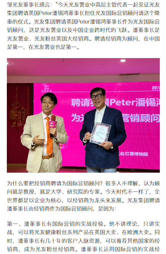 轉載搜狐網(wǎng)-光友薯業(yè)攜手國際營銷顧問 讓中國健康粉絲登陸全球超市