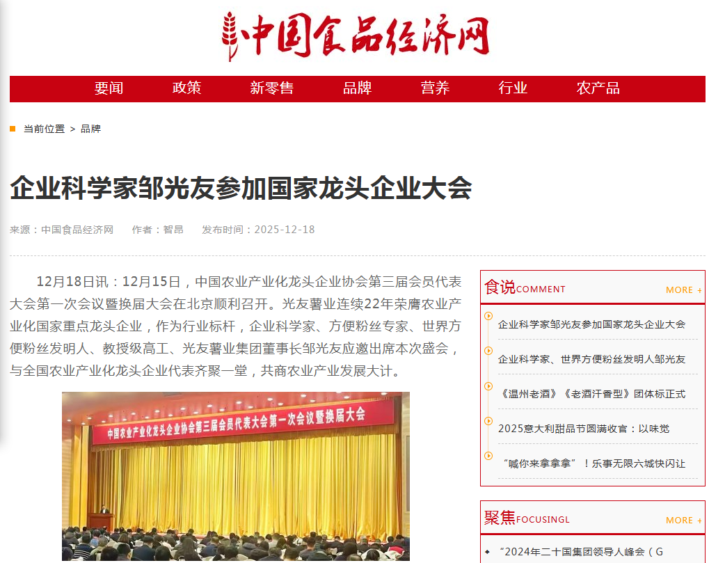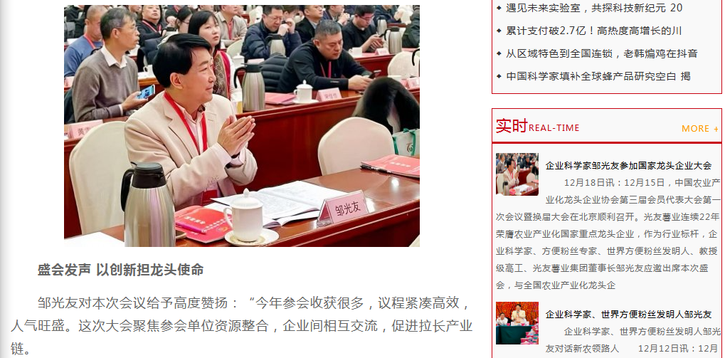 轉(zhuǎn)載中國食品經(jīng)濟網(wǎng)-企業(yè)科學(xué)家鄒光友出席國家龍頭企業(yè)大會
